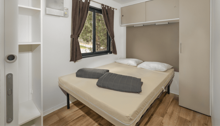 The Solare Deluxe offers luxury for 5 people. This mobile home has 2 bedrooms, plenty of storage space and a fully equipped kitchen with tall fridge and 4-burner gas hob. At the front is a wooden terrace with partial canopy, ideal during the hottest hours or during a rainstorm.