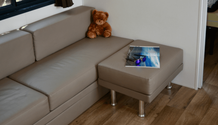 The mobile home features comfortable bedrooms with quality beds and sufficient storage space. The master bedroom is furnished with a comfortable double bed. The second bedroom has two single beds and a practical fold-out children’s bed, making this accommodation also very suitable for families with young children.Bathroom