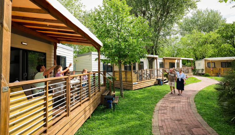 Outside, the mobile home features a spacious terrace with a (partially) covered roof. The terrace is furnished with complete garden furniture and a barbecue, allowing you to fully enjoy outdoor living at the campsite. At some campsites, it is possible to enclose the terrace with a small fence, which is especially convenient for families with young children.